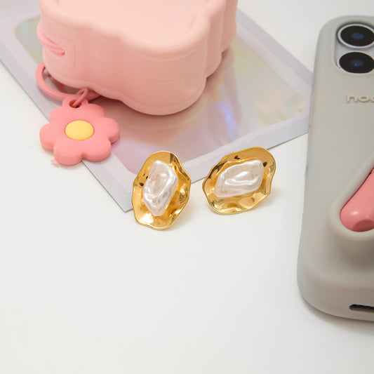 B廠 歐美款 MARGOT天然珍珠鈦鋼鍍18K金耳環 批發 折扣@洽客服 25.08.W1「JDE0304009」
