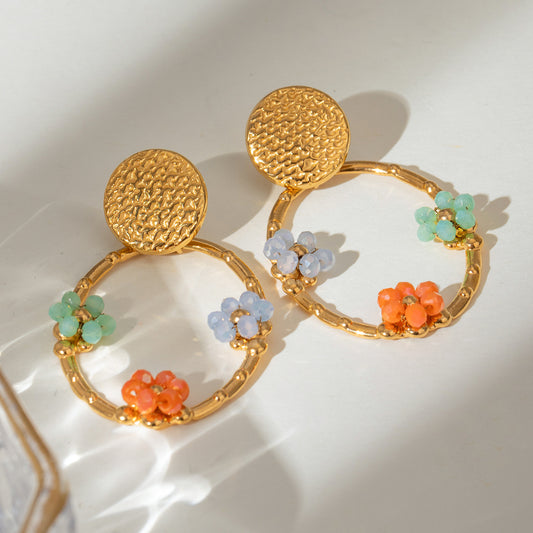 B廠 歐美款 ANDRIANA 天然石鈦鋼鍍18K金戒指&耳環「JDEW2409015+JDRW2409007」24.12.W1 批發折扣@洽客服