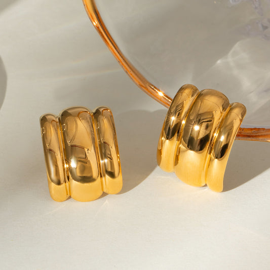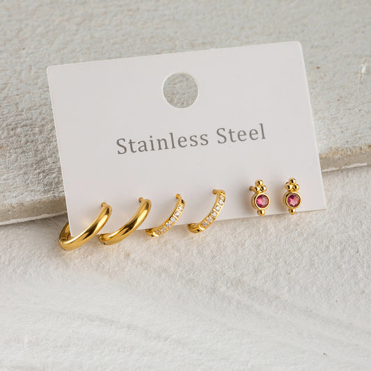 B廠 歐美款 ELAS 鈦鋼鍍18K金耳環-三件套「JDE2409037」24.12.W2 批發折扣@洽客服