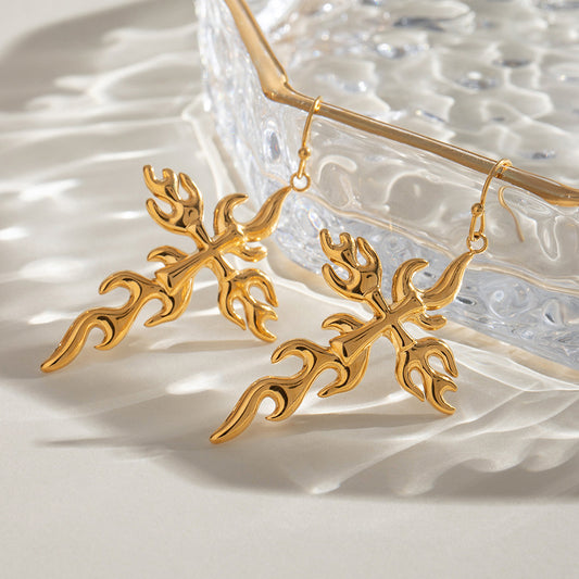 B廠 歐美款 FIRE 十字架 鈦鋼鍍18K金耳環「JDE2407053」25.01.W1 批發折扣@洽客服