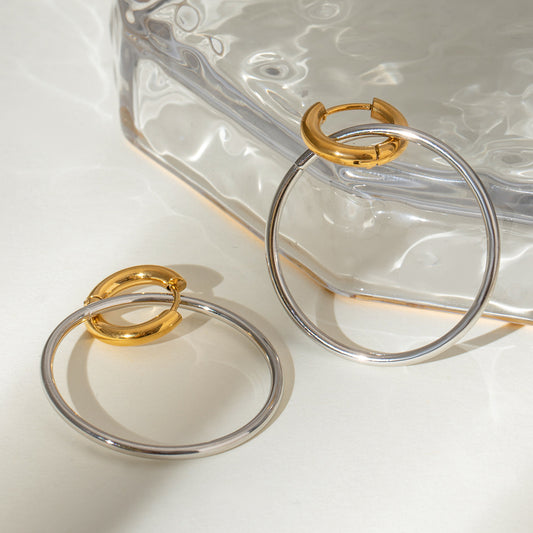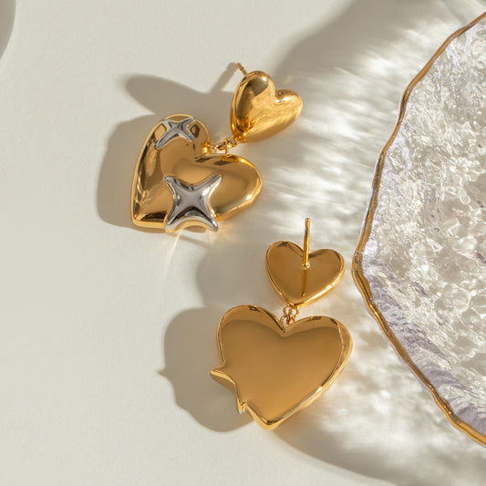 B廠 歐美款 拼色雙層愛心鈦鋼鍍18K金耳環「JDE2405060-PS」24.12.W2 批發折扣@洽客服