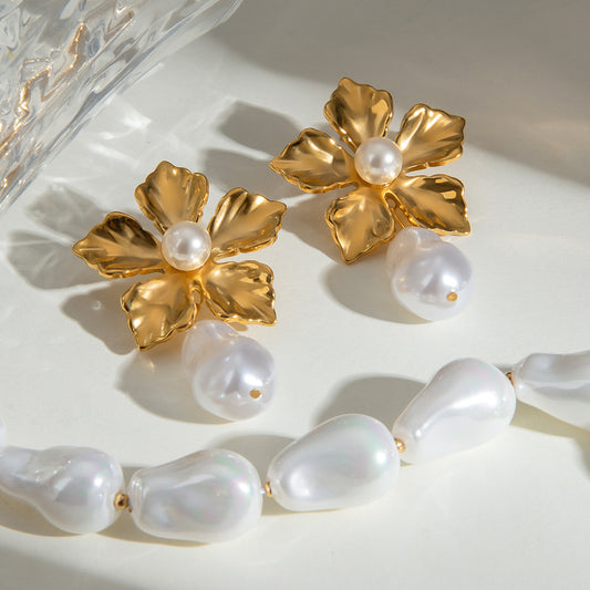 B廠 歐美款 LENA 天然石貝殼鈦鋼鍍18K金耳環「JDE2409048」24.12.W1 批發折扣@洽客服