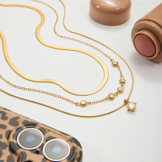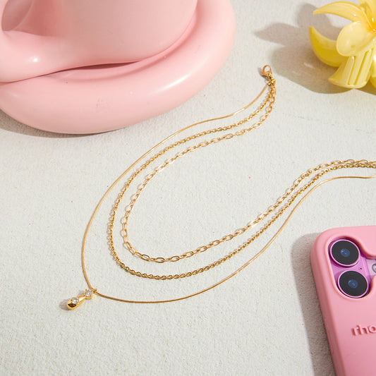 B廠 歐美款 SCARLETT 鈦鋼鍍18K金 3層項鍊 批發 折扣@洽客服 25.11.W2「JDN0307044」
