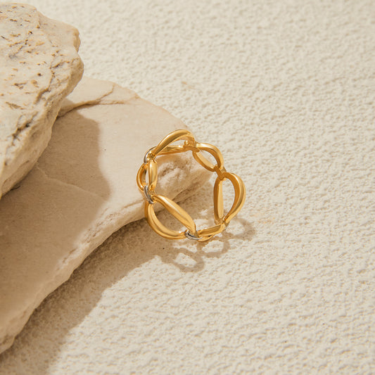 B廠 歐美款 金銀拼色流蘇鈦鋼鍍18K金戒指 批發 折扣@洽客服 25.09.W2「JDR0212003」
