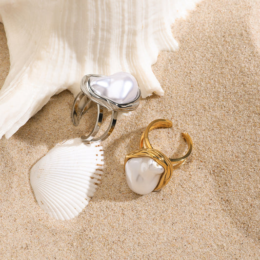 B廠 歐美款 PURE 淡水珍珠鈦鋼鍍18K金戒指 批發 折扣@洽客服 25.09.W4「JDR0307003-7」