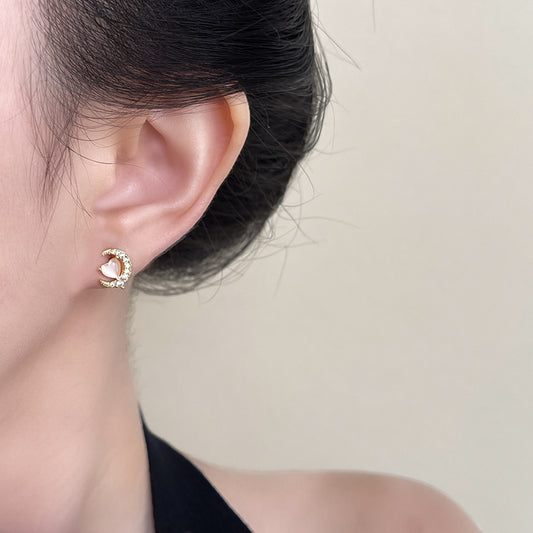 A2廠 日韓款氣質月亮玻璃貓眼石銀針耳環 批發 折扣@洽客服 25.12.W1「4408」