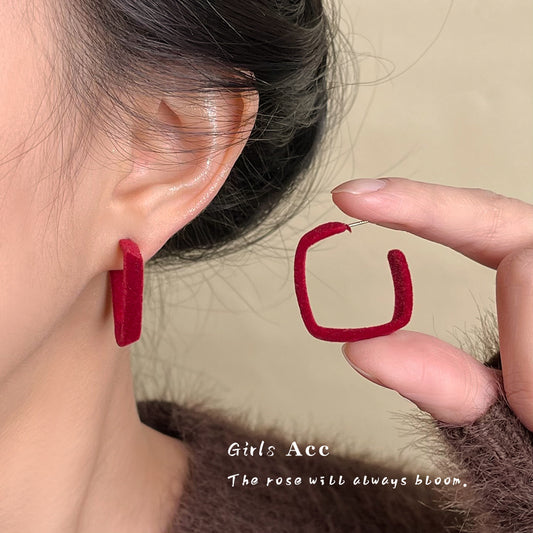 A廠 韓系復古酒紅植絨銀針耳環 批發 折扣@洽客服 25.02.W3「5297」