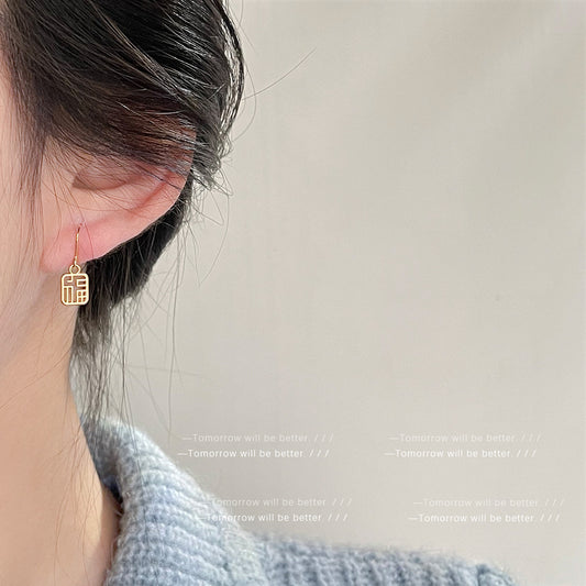 A廠 韓系幸運福牌銅鍍14K金銀針耳環 批發 折扣@洽客服 25.04.W2「3596」