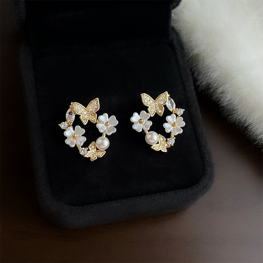 A2廠 日韓款氣質蝴蝶鏤空花卉銀針耳環 批發 折扣@洽客服 25.12.W1