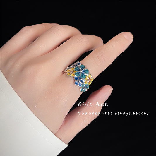 A廠 日韓款琺瑯滴油花銅鍍白金戒指 批發 折扣@洽客服 25.12.W2「6235」