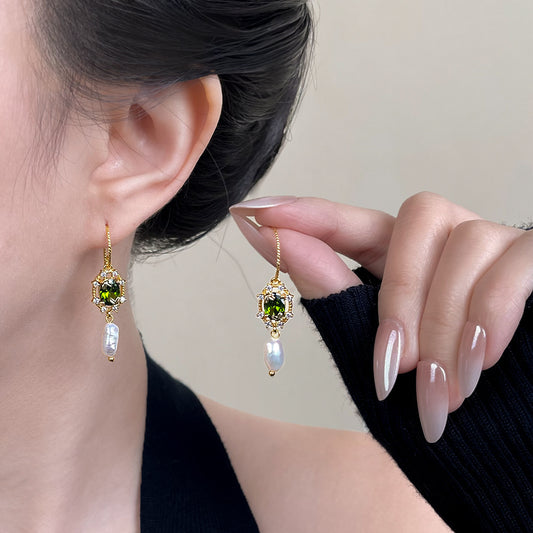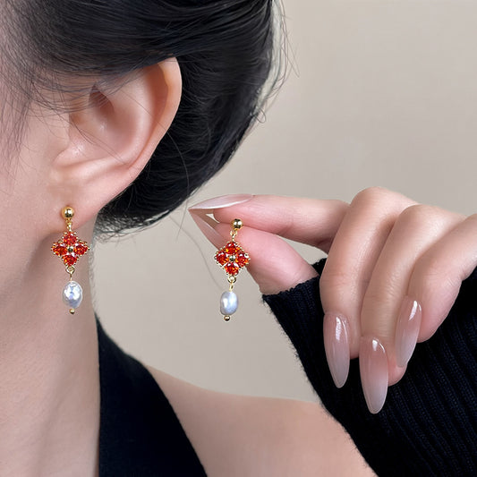 A廠 日韓款輕奢重工紅鋯石淡水珍珠銀針耳環 批發 折扣@洽客服 25.12.W2「6917」