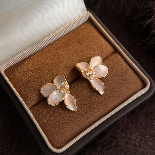 A廠 日韓款白玉蘭漸層滴釉花朵銀針耳環 批發 折扣@洽客服 25.12.W2「6950」
