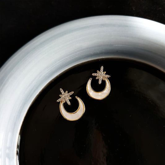 A廠 韓系微鑲鋯石星星月亮銀針耳環「34」24.12.W5 批發折扣@洽客服