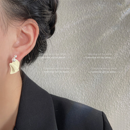 A廠 韓系藝術幾何褶皺珍珠銀針耳環「1625」24.12.W5 批發折扣@洽客服