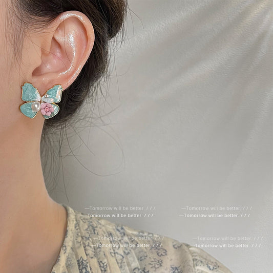 A廠 韓系油畫質感滴油蝴蝶銀針耳環「4369」24.12.W5 批發折扣@洽客服