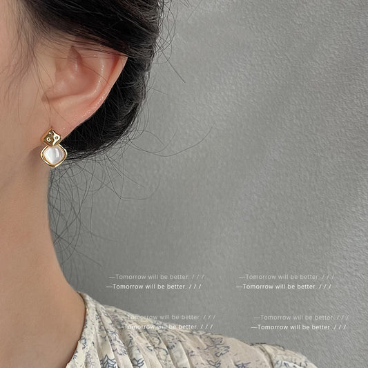 A廠 日韓系復古天然貝殼銅鍍14K銀針耳環「4185」24.12.W3 批發折扣@洽客服