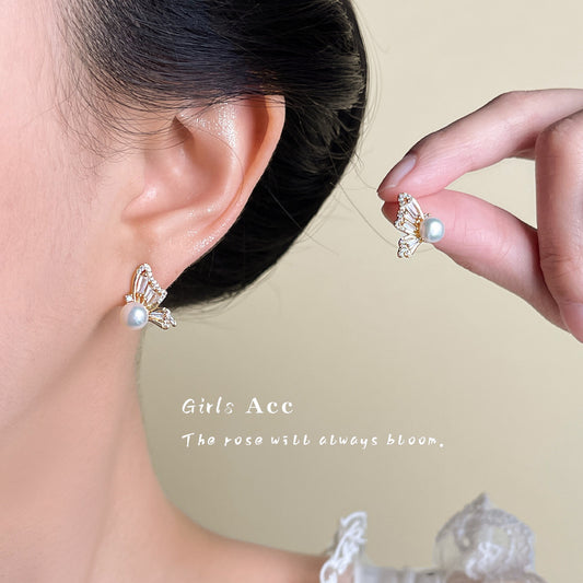 A廠 日韓款 微鑲鋯石蝴蝶銀針耳環 批發 折扣@洽客服 25.09.W2「A291」