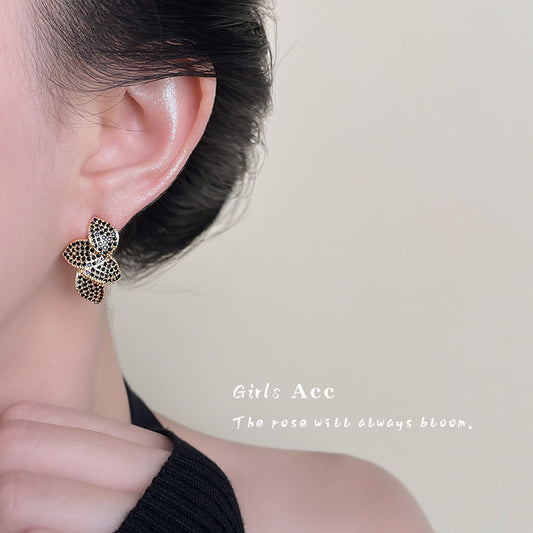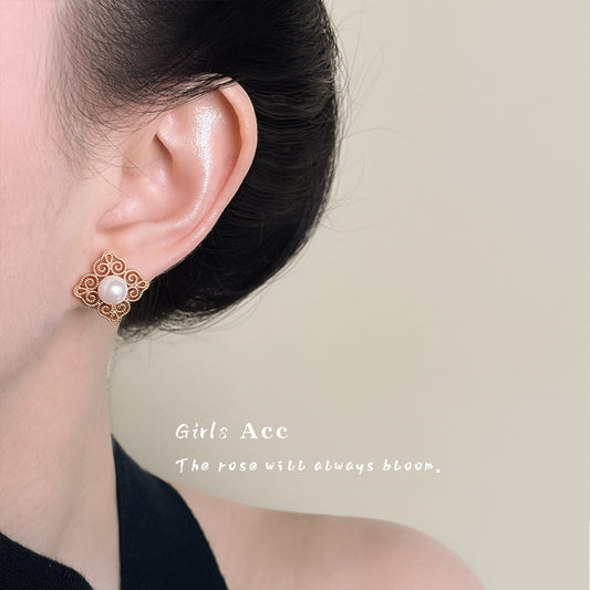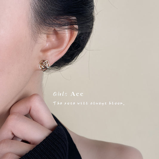 A廠 日韓款 車花工藝鏤空玫瑰花銀針耳環 批發 折扣@洽客服 25.09.W4「6511」