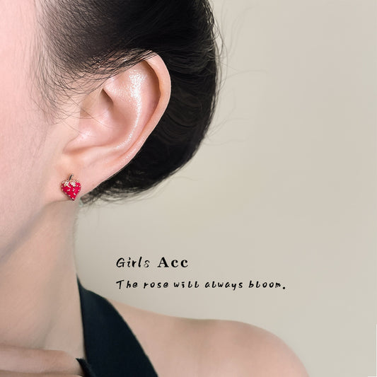 A廠 日韓款 小清新滴油草莓銀針耳環 批發 折扣@洽客服 25.09.W2「6570」