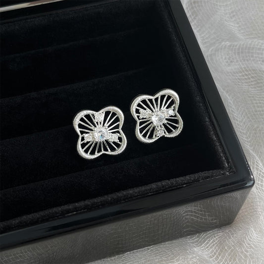 A廠 日韓款 鏤空蕾絲花朵鋯石銀針耳環 批發 折扣@洽客服 25.09.W4「6543」