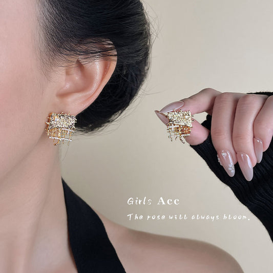 A廠 日韓款 時尚網狀編織鋯石銀針耳環 批發 折扣@洽客服 25.09.W4「6512」