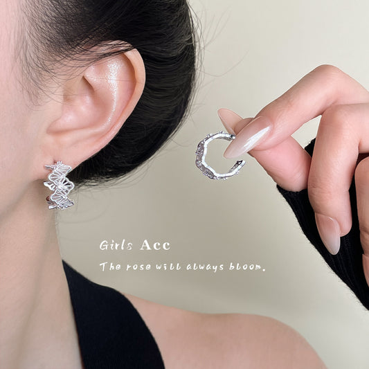 A廠 日韓款 不規則褶皺銀針耳環 批發 折扣@洽客服 25.09.W2「2980-2981」