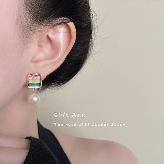 A廠 日韓款 彩色漸層手繪滴油銀針耳環 批發 折扣@洽客服 25.09.W2「6552」