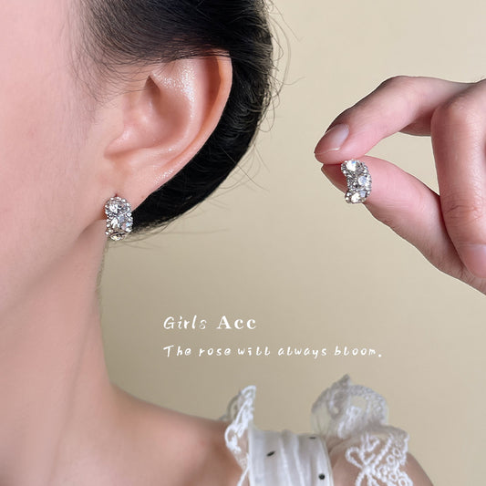 A廠 日韓款 柏林灰鑲鑽銀針耳環 批發 折扣@洽客服 25.09.W2「2582」