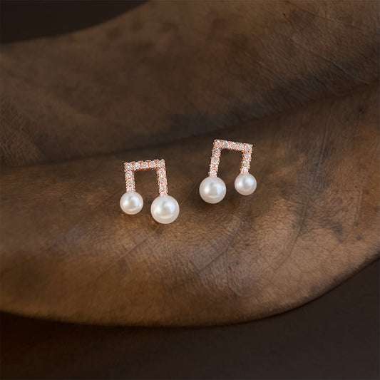 A廠 韓國韓系樂章音符珍珠銀針耳環 批發 折扣@洽客服 25.09.W1「6442」