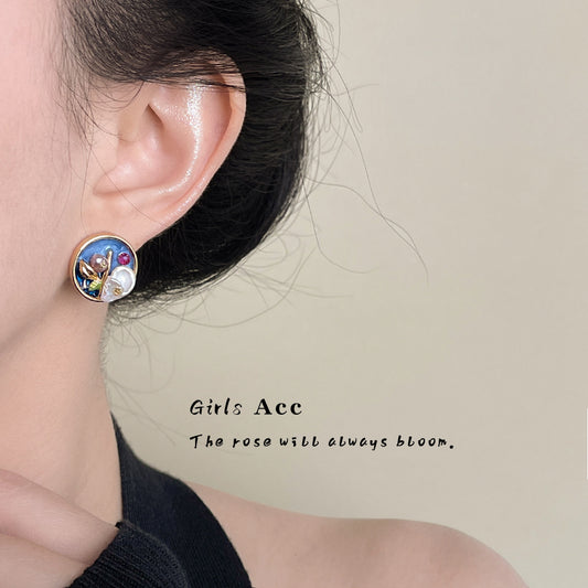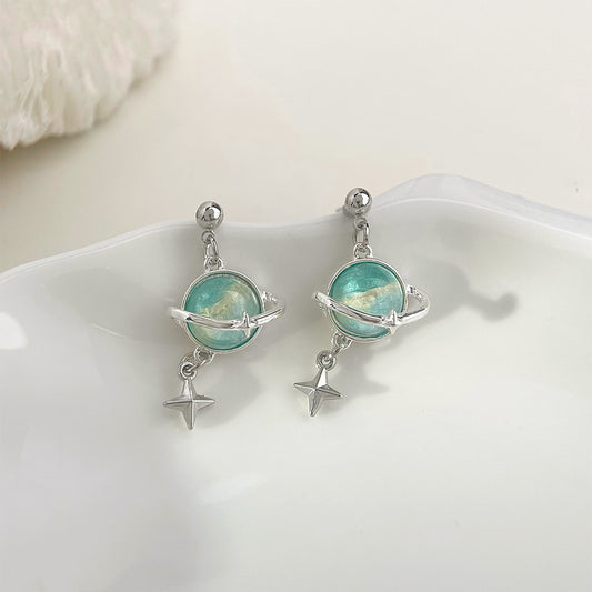 A廠 韓國韓系創意趣味藍色星球銀針耳環 批發 折扣@洽客服 25.09.W1「6418」