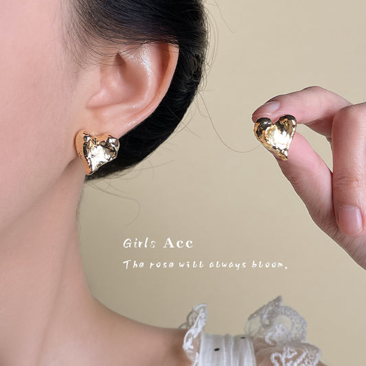 A廠 日韓款 不規則褶皺愛心銀針耳環 批發 折扣@洽客服 25.09.W2「2151-2152」