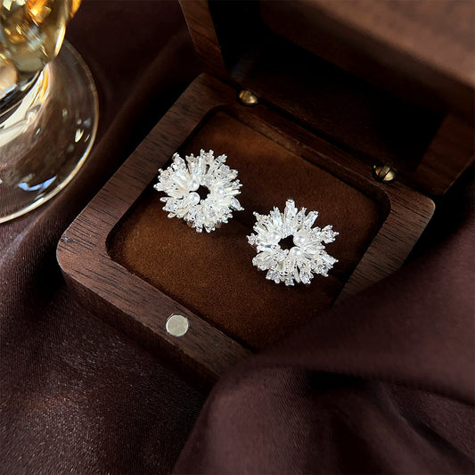 A廠 韓國韓系煙火易冷~立體鋯石珍珠銀針耳環 批發 折扣@洽客服 25.09.W1「4214」