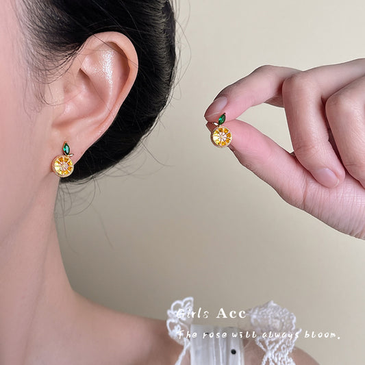 A廠 韓國韓系創意鋯石小橘子銀針耳環 批發 折扣@洽客服 25.09.W1「1257」