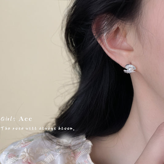 A廠 韓國韓系簡約蚌殼珍珠銀針耳環 批發 折扣@洽客服 25.09.W1「4642」