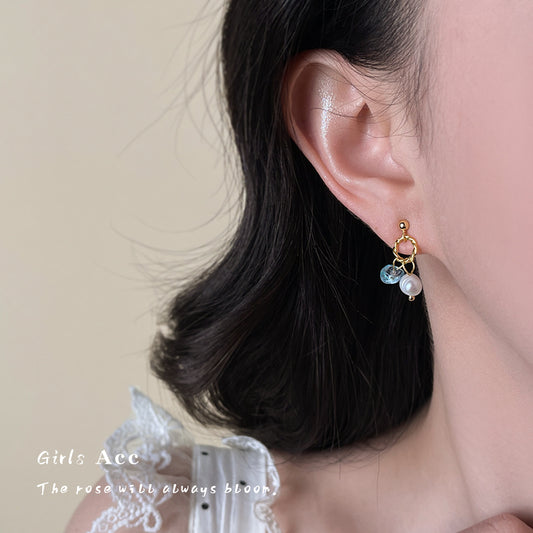 A廠 韓國韓系玻璃水晶淡水珍珠銀針耳環 批發 折扣@洽客服 25.09.W1「6441」