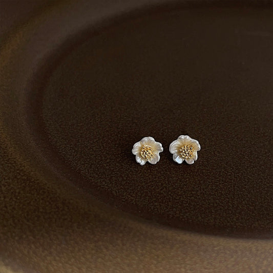 A廠 日韓白色山茶花銀針耳環批發 折扣@洽客服 26.03.W3「1841」