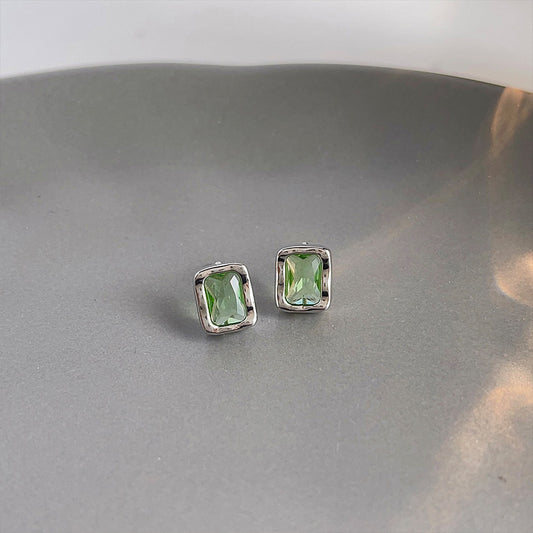 A廠 韓系淺綠鋯石方形環保銅銀針耳環批發 折扣@洽客服 26.03.10「2283」