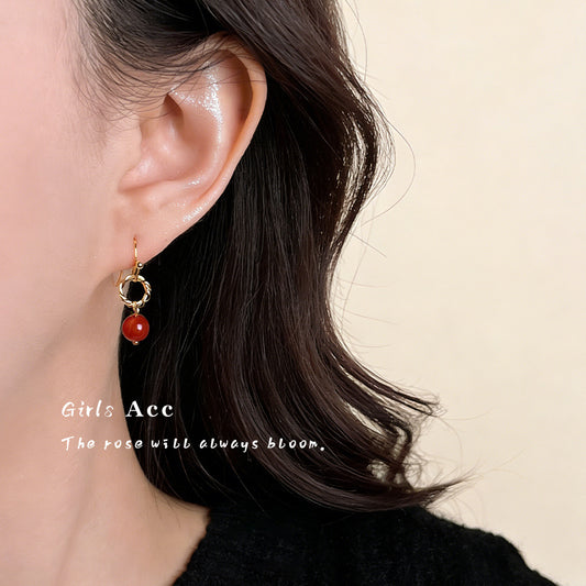 A廠 韓系款 合成南紅瑪瑙銀針耳環 批發 折扣@洽客服 26.03.W1「6489」