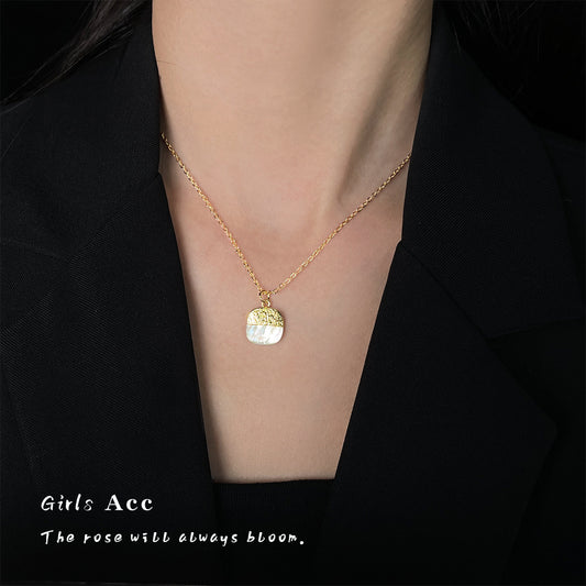 A廠 韓國韓版復古方形貝殼鍍18k金項鍊 飾品批發 折扣@洽客服 25.10.W1「6608」