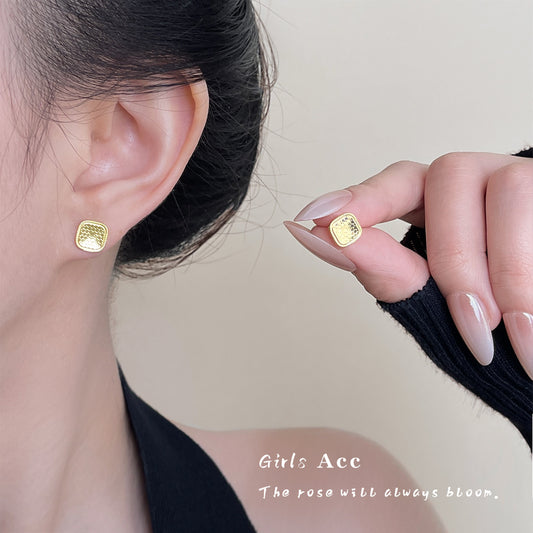 A廠 日韓款碎冰冰方形鍍18k金銀針耳環 批發 折扣@洽客服 25.11.W4「6822」