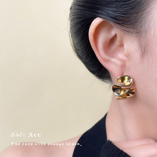 A廠 日韓款幾何褶皺鍍18k真金耳環 批發 折扣@洽客服 26.01.W1「7046」
