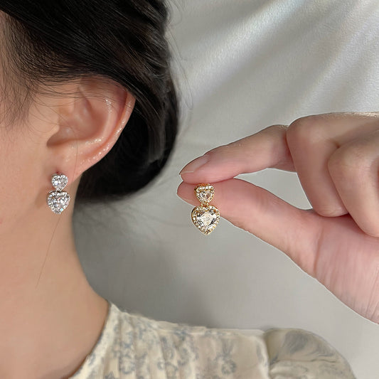 A廠 日韓款輕奢風愛心鋯石鍍18K金銀針耳環 批發 折扣@洽客服 25.11.W4「3112-3113」