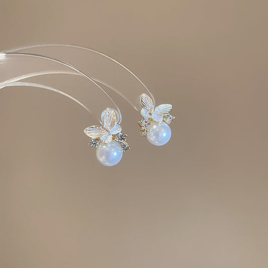A2廠 韓國韓版鑲鑽滴油蝴蝶珍珠銀針耳環 批發 折扣@洽客服 25.07.W1「HE25969」