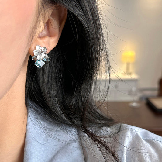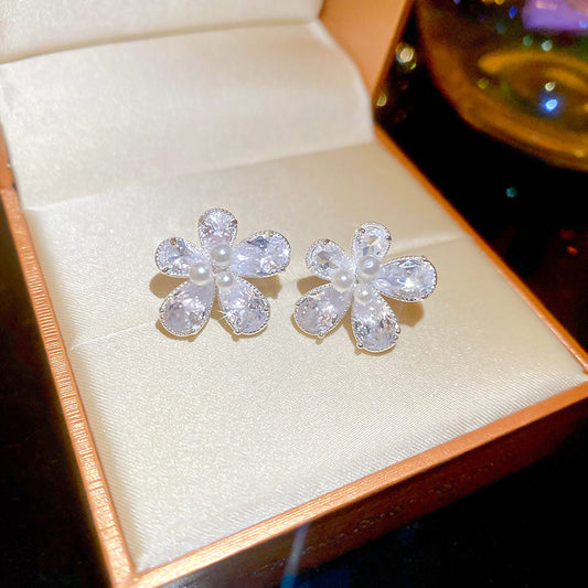 A2廠 韓國韓版鋯石水滴珍珠花朵銀針耳環 批發 折扣@洽客服 25.08.W1「HE27372」