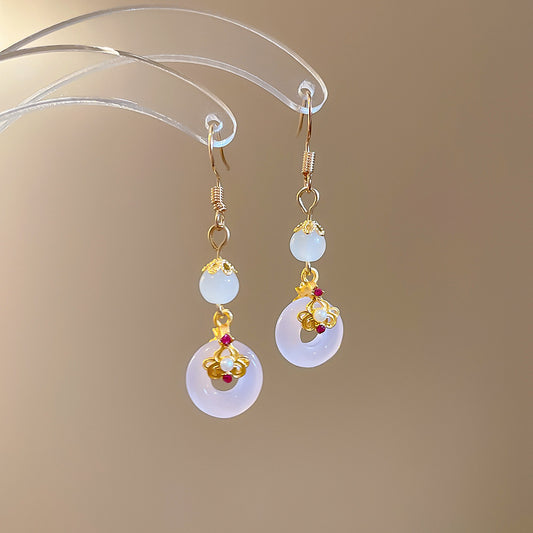A2廠 韓國韓版玉髓平安扣流蘇銀針耳環 批發 折扣@洽客服 25.07.W4「HE26492」