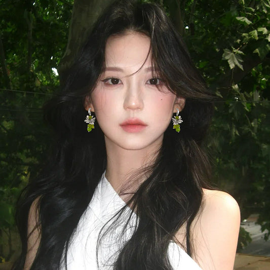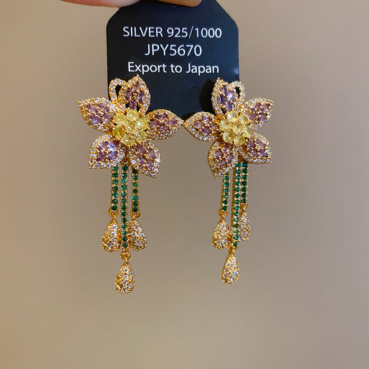 A2廠 韓國韓版C型花朵水晶葡萄流蘇銀針耳環 批發 折扣@洽客服 25.08.W1「HE27523」