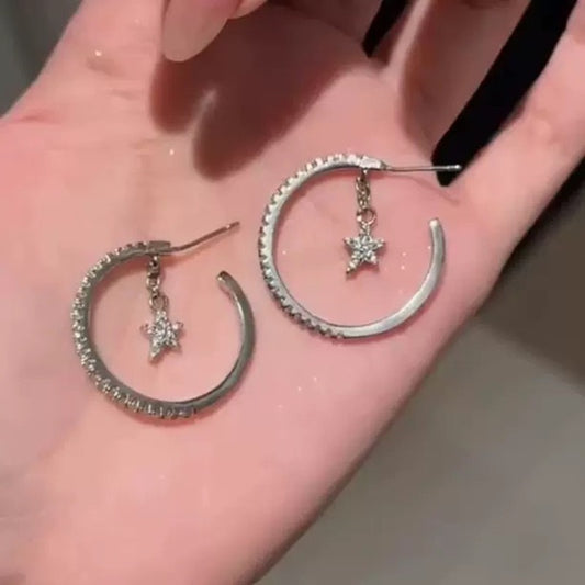 A2廠 韓國韓版鑲鑽C型星星流蘇銀針耳環 批發 折扣@洽客服 25.08.W5「HE27919」