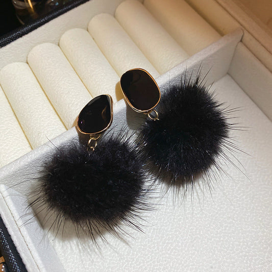 A2廠 韓國韓版滴油黑色毛球銀針耳環「HE24132」25.01.W2 批發折扣@洽客服