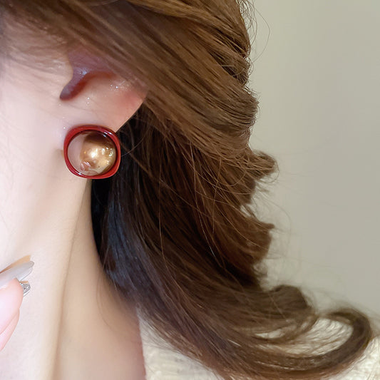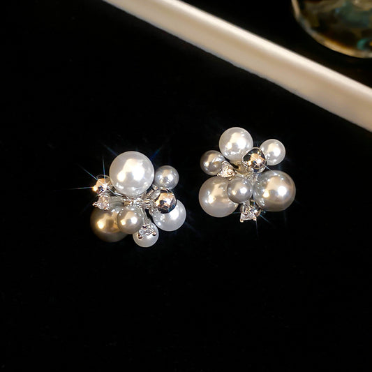A2廠 韓國韓版鋯石撞色圓球珍珠銀針耳環「HE24240」25.01.W2 批發折扣@洽客服