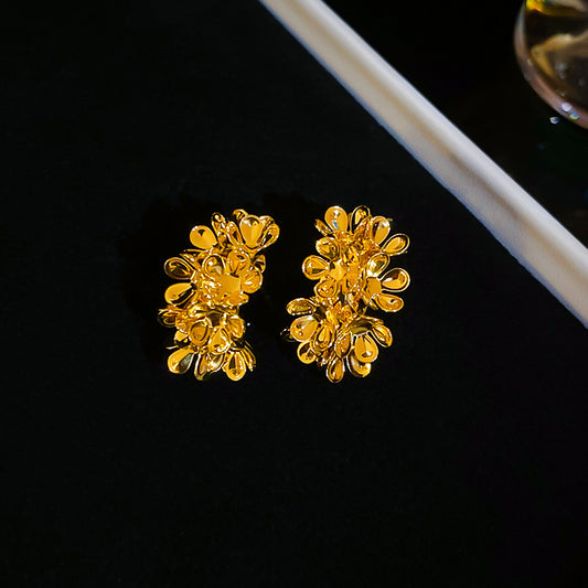 A2廠 韓國韓版金屬花朵C型銀針耳環「HE24533」25.01.W1 批發折扣@洽客服